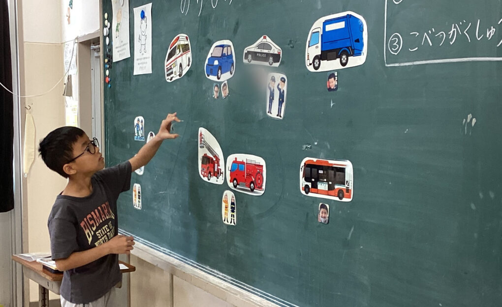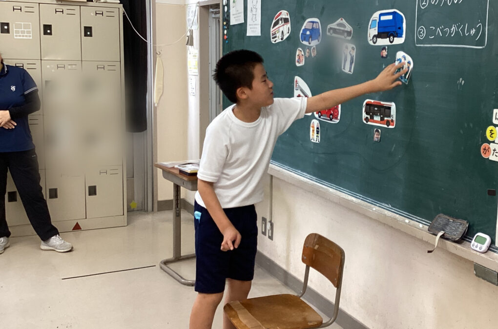 いろいろな「のりもの」について学習をしています。乗り物と働く人や乗る人のイラストをマッチングする活動を行うことで、それぞれの乗り物がどんな場面で誰が使うのかということを理解することができました。 |