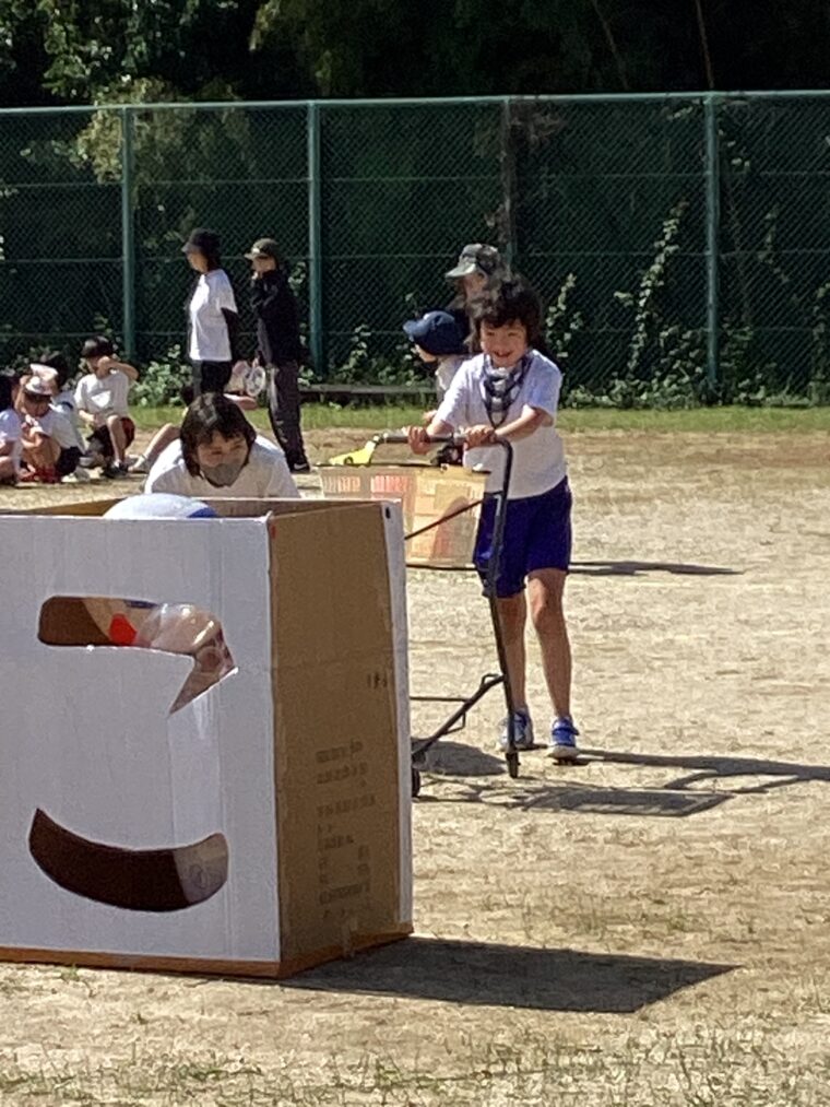 今年度初めての体育祭練習に取り組み、徒競走はいつもの2倍以上ある距離に挑戦。ゴールを目指して頑張りました。玉運びリレーでは土の上でもカートを真っすぐ押すことを意識しながら大きな玉を運び、箱に入れられました。 |