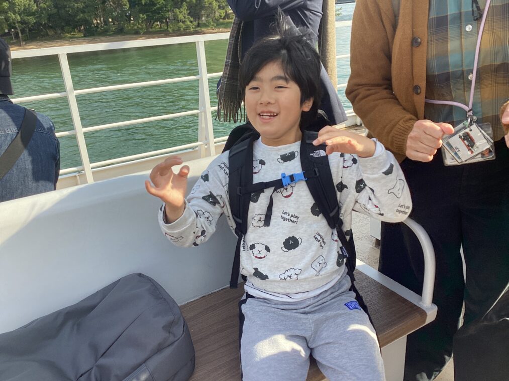 | 生活単元学習「やってみたいむ」では、秋晴れの空の下、天橋立ビューランドに行ってきました。事前に選んだ乗り物に自分でチケットを買って乗ったり、遊具を楽しんだり、クラス皆で最高の時間を過ごしました。また、帰り道の観光船のカモメには大興奮でした! |