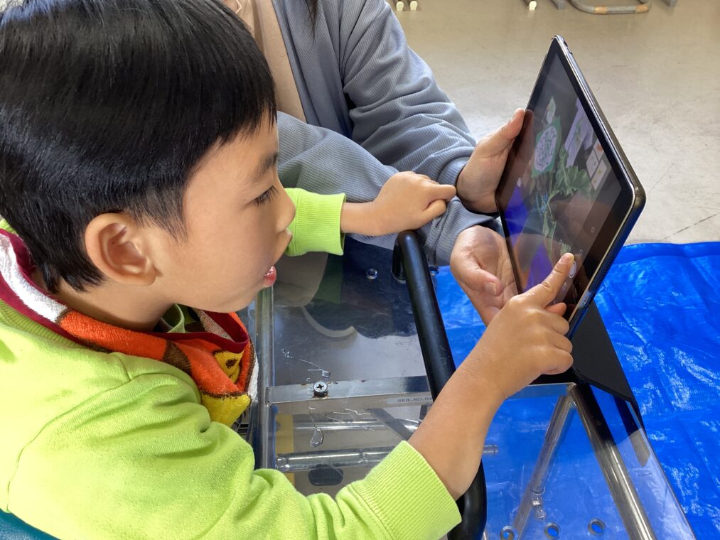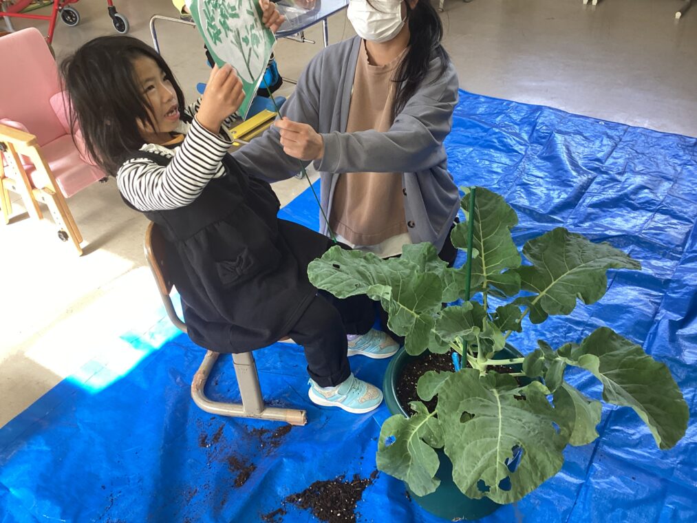| 生活単元学習「やってみたいむ」では、以前植えたブロッコリーの成長を観察し、写真を撮りました。また、ブロッコリーの野菜看板をプランターにさし、自分が植えたブロッコリーが分かるようにしました。収穫が楽しみです♪ |
