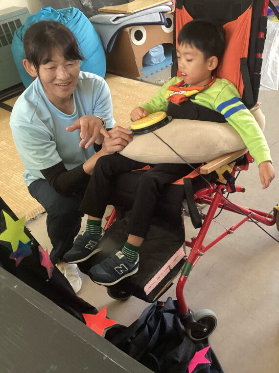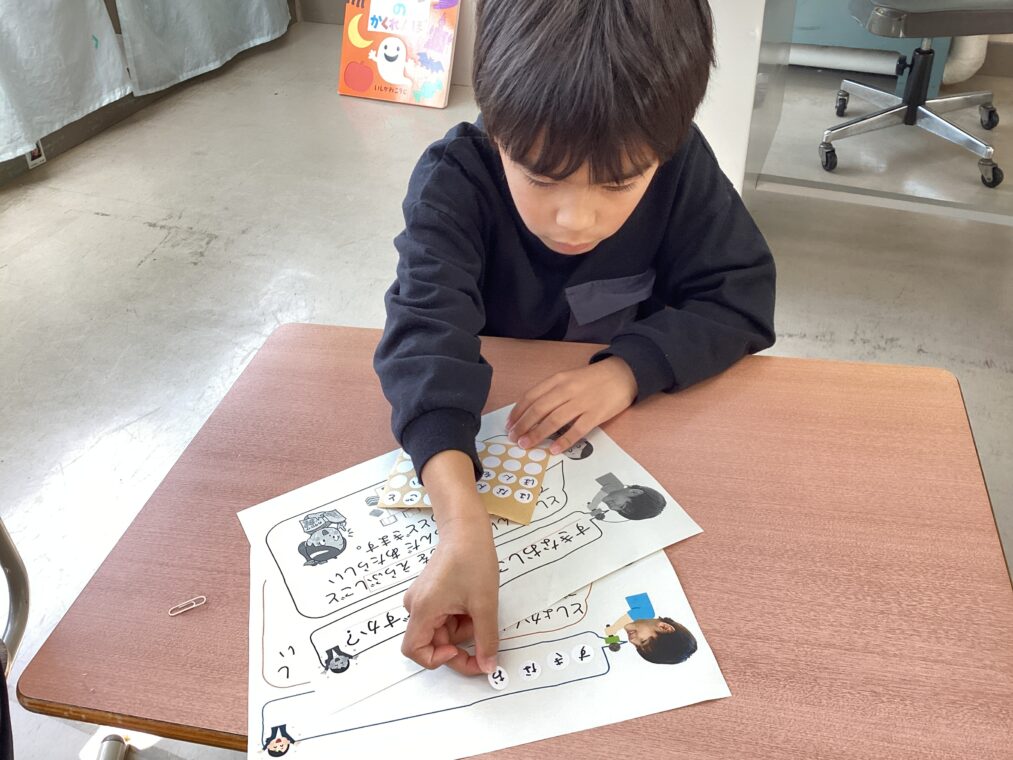 | 下校の準備ができると「お楽しみ時間」です。お絵描きやダンスなど、それぞれの好きな遊びをして楽しく過ごします。友達が遊んでいる姿を見て「一緒にやってみたい!」という思いを指導者と一緒に友達に伝えることができました。 |