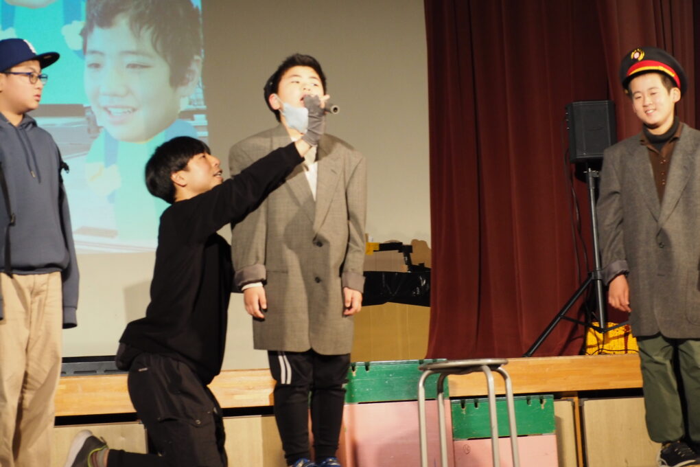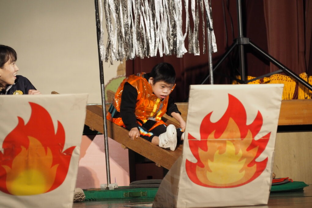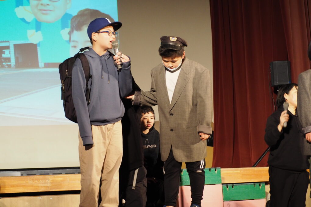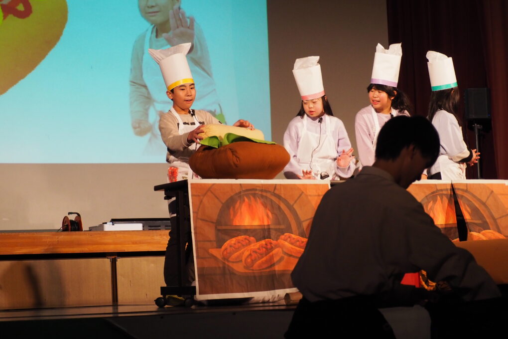 | 生活単元学習(やってみたいむ)で「お仕事探検隊」として各学級が校外学習に出掛け、仕事について知ったり体験したりして学んだことを発表しました。バスの運転手さんやパン屋さん、大工さんに消防士さんとそれぞれの役になりきって演じたり、大きな声でせりふを言ったりと堂々と発表することができました。沢山のお客さんに自分たちが学んだことを伝えることができ、みんな笑顔いっぱいでした。 |