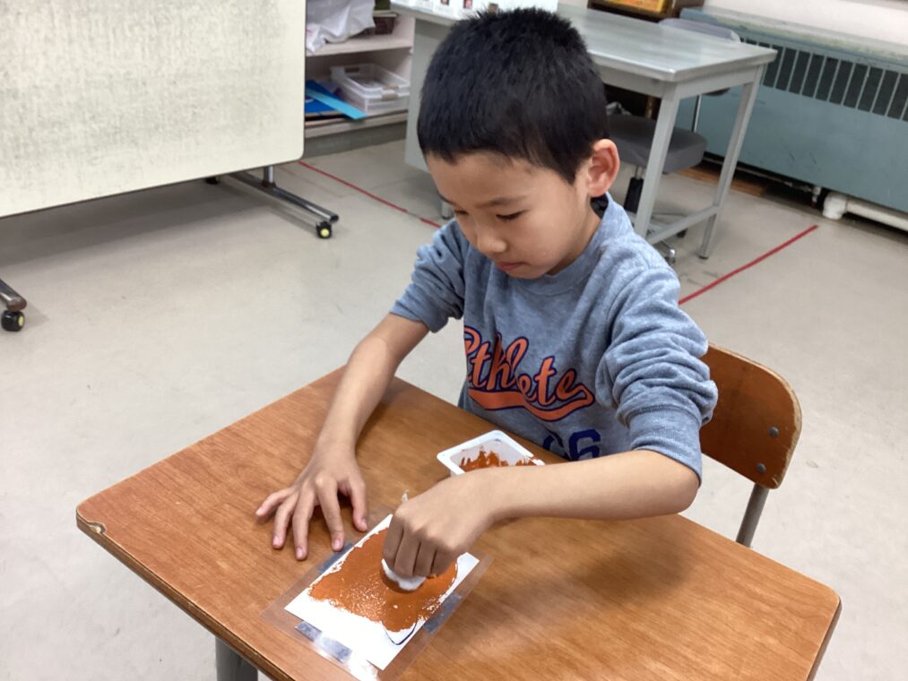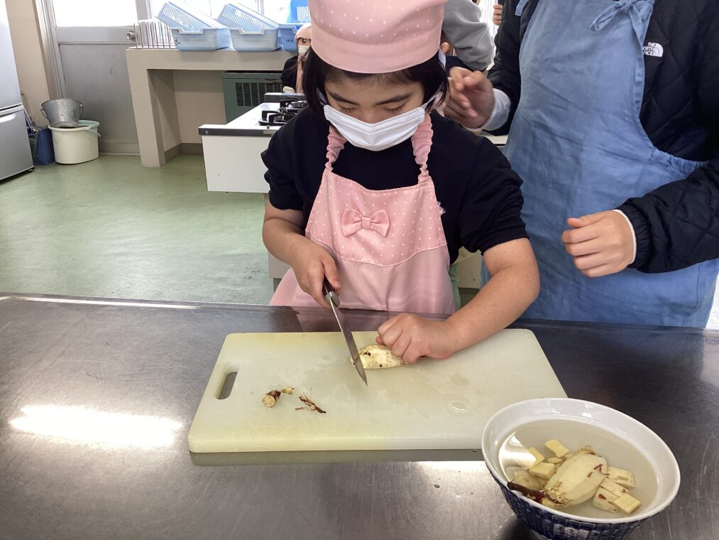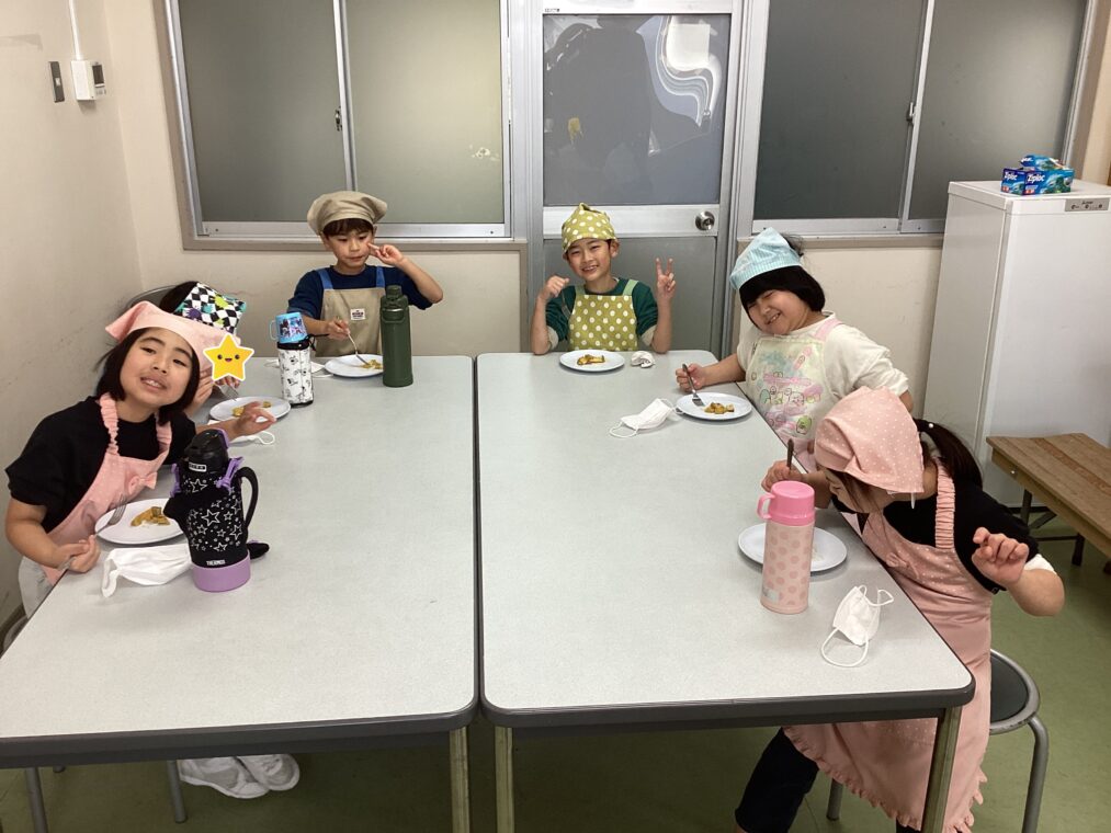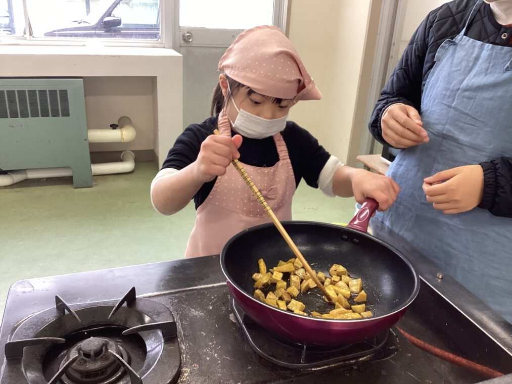 | 生活単元学習「やってみたいむ」では、収穫したさつまいもで大学芋を作りました。この日をずっと楽しみにしていた子ども達。準備から片付けまで皆で協力して行いました。自分達で作った大学芋、「美味しいー!」と皆大満足であっという間に完食でした。 |