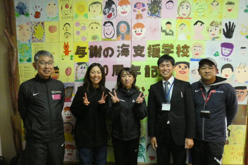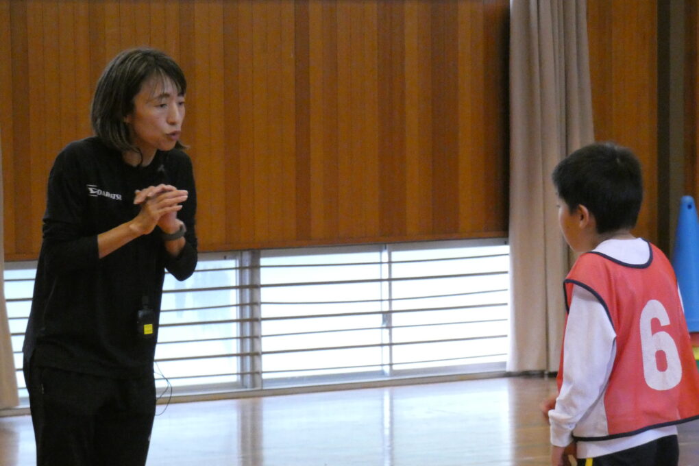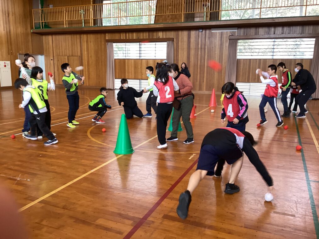小学部高学年の4学級を対象にダイハツ陸上競技部アドバイザーの木﨑良子さんをお迎えし、陸上教室を実施しました。ゲーム要素を取り入れた楽しい活動から、速く走るためポイントまで、木﨑さんが準備してくださった多彩なプログラムに、子ども達は目を輝かせながら参加していました。質問コーナーでは「いつから陸上を始めましたか?」「速く走るためには何を食べたらいいですか?」などの質問に、丁寧に分かりやすい答えをいただき子ども達は興味津々。
