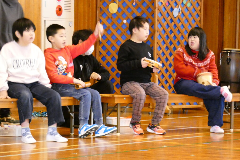 1月30日に小学部音楽発表会を開催しました。高学年は、2グループに分かれて、音楽に親しみながらのびのびと踊ったり、友達と息を合わせて合奏したりしました。緊張の中でも力を発揮し、笑顔で楽しむことができました。また、高学年の代表3名が実行委員として司会をしたり、みんなで片付けをしたりと自分たちで発表会を作り上げることができました。