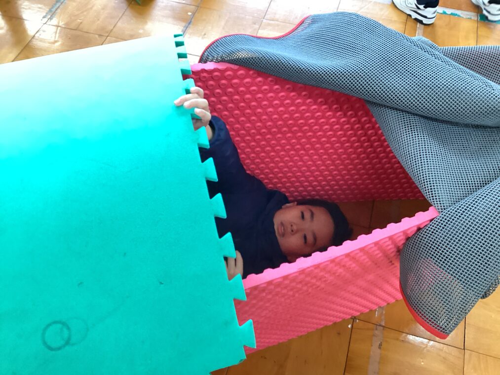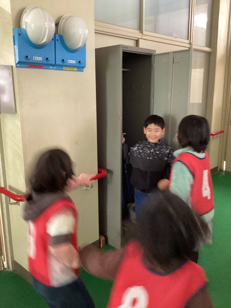 | 小学部の児童みんなで交流遊びとしてかくれんぼをしました。いつものかくれんぼとは違う、他の教室、廊下など、学校の様々な場所を使ったダイナミックなかくれんぼに大盛り上がりでした。学級を越えて友達と楽しく遊ぶことができました。 |