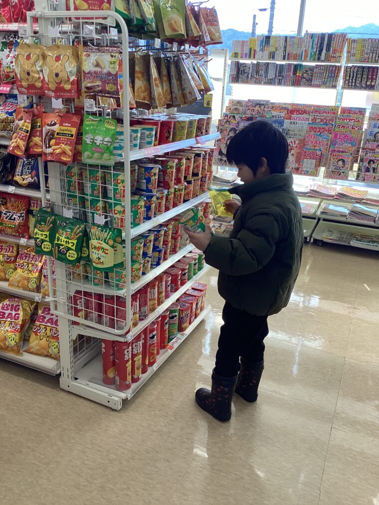 | 生活単元学習「やってみたいむ」では、買い物に出掛けました。好きなお菓子を1つ選んでレジに行き、やりとりをして買うことができました。みんな食べたいお菓子を目の前に、笑顔いっぱいでした。 |