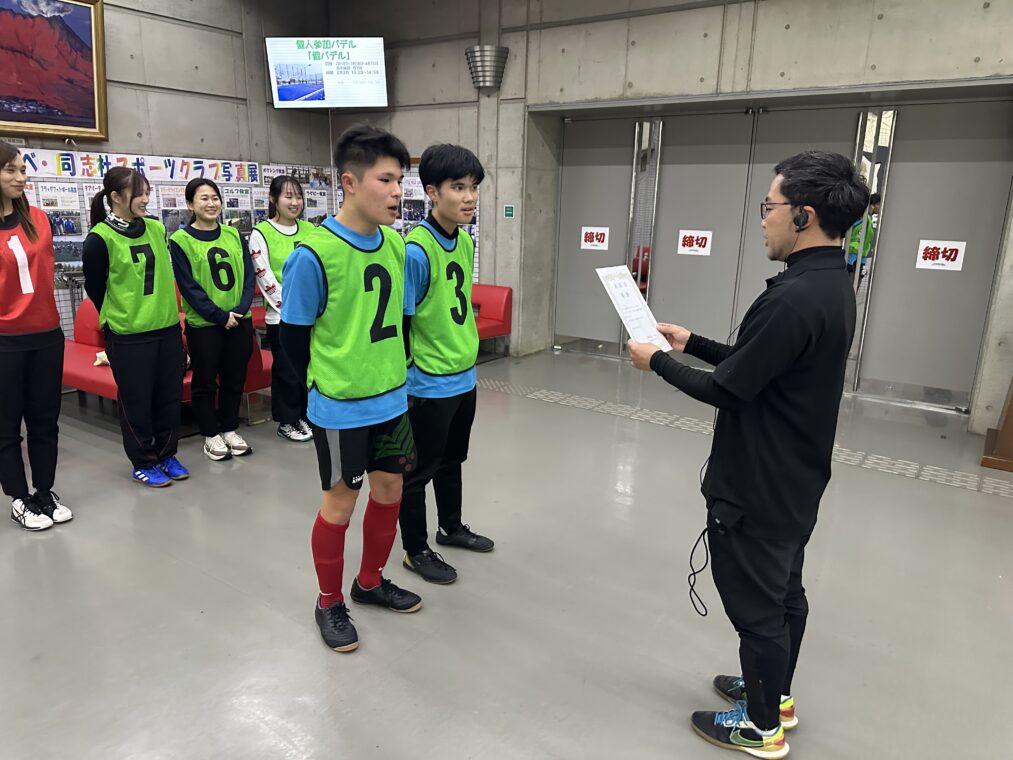 第11回京田辺レーヴチャレンジカップ 高等部 2026.02.27 2月15日(日)に京田辺市田辺中央体育館で開催された第11回京田辺レーヴチャレンジカップに高等部のフットサル部(希望者)が参加してきました。京都府内の特別支援学校のチームや支援学校OBチーム、関西トレセンのメンバー等が集結し、熱戦が繰り広げられました。参加した生徒達はとても良い刺激を受け、試合を楽しむことができました。 Post Views: 68
