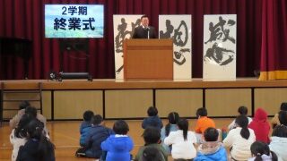 今日で、2学期が終了しました。終業式では、校長から「2学期にはどんな力がついたか」「3学期にはどんな自分でありたいか」等、話がありました。大掃除をしたり、各教室で通知表をもらったり、冬休みの宿題や生活について確認をしたりしました。