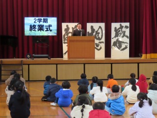 今日で、2学期が終了しました。終業式では、校長から「2学期にはどんな力がついたか」「3学期にはどんな自分でありたいか」等、話がありました。大掃除をしたり、各教室で通知表をもらったり、冬休みの宿題や生活について確認をしたりしました。