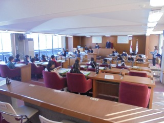 今日は、6年生が3小のみんなと議会見学に行きました。議場の説明を受けたり、議員さんに質問したりして、宮津市の議員さんの役割や議会の仕組み等について学ぶことができました。宮津をよりよくするために、頑張っておられる人の存在を実感し、自分たちにも何かできることはないかと考えようとする姿もありました。尚、この議会見学の様子は、市議会だより(各戸配布の冊子)等に掲載される予定です。