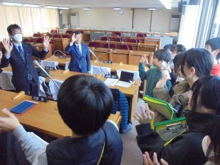 6年生今日は、6年生が3小のみんなと議会見学に行きました。議場の説明を受けたり、議員さんに質問したりして、宮津市の議員さんの役割や議会の仕組み等について学ぶことができました。宮津をよりよくするために、頑張っておられる人の存在を実感し、自分たちにも何かできることはないかと考えようとする姿もありました。尚、この議会見学の様子は、市議会だより(各戸配布の冊子)等に掲載される予定です。