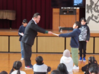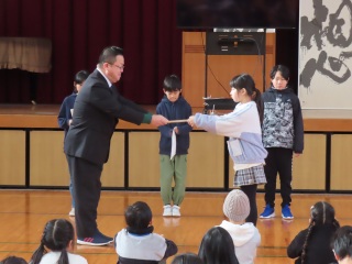 学校の様子先日の立会演説会を受けて、来年度の4月から前期児童会メンバーになる4名の任命式をしました。新会長から「みんなが信じて投票してくれたことを忘れずに、一生懸命がんばります」とあいさつがありました。よりよい吉津小学校にするために、今の本部の姿を引き継ぎ、新しいことにもチャレンジして頑張ってくれることを楽しみにしています。