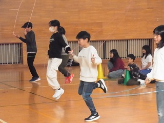 個人縄跳び大会をしました。1分間に何回跳べるかを種目ごとにチャレンジします。校内記録の更新を目指したり、自己新記録を目指したりしながら、自分の決めた種目にチャレンジしました。ひっかかったら、0からの数え直しとなるため、いかに連続でたくさん跳べるかがポイントになります。今まで練習してきた成果を出し、自分のめあてに向かってがんばる姿が素敵でした。