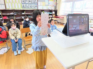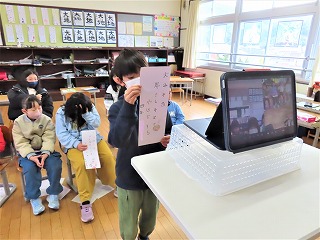 先日、4年生が3小の友達と一緒に冬の句会をリモートで行いました。