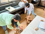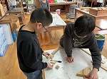 3年生が図工の時間にのこぎりに挑戦しました。角材や棒を切ってできたたくさんの木片を、積んだり並べたりして作品を作ります。れぞれの木片の形を生かしながらボンドでつなぎます。倒れないようにバランスを取りながら、思い思いの形に組み立てていく予定です。どんな作品になるか楽しみです。