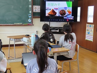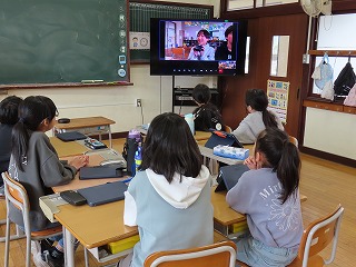 学校の様子今日は、3小の5年生が総合的な学習の時間に学習したことについて、1年間の成果を交流し合いました。リモートでの交流でしたが、各校の学びについて感想を伝え合ったり、おたずねをし合ったりできました。それぞれの学びを知る中で、宮津市の地域の良さも実感することができました。また、「私たちも来年はこんなことを…」等と来年度の学習内容についても、見通しをもつとともに期待を膨らませる様子も見られ、素敵でした。