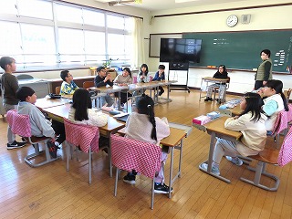 「お話し会」は、朝会があるとき以外は基本毎日続けます。自分の話したいことを話し、学級の友達に温かい雰囲気の中で聞いてもらい、ちょっとした疑問や困ったことなども、みんなに意見を聞いたり、解決したりしながら安心できる学級・学校になることを目指しています。