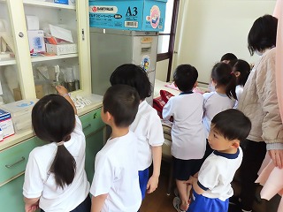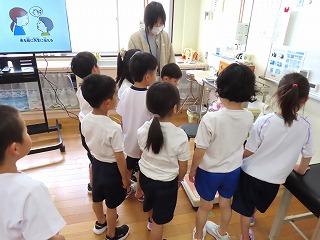 1年生が保健室の使い方を知り、身体計測をしました。はじめにどんな時に保健室にきたらよいのか考えました。次に保健室探検をして、体調が悪くなった人のためのベッドなどがあるのを知りました。