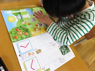 今日は、国語の時間に鉛筆でなぞる練習をしました。できるだけはみ出さないように丁寧に慎重に書く姿がとっても素敵です。