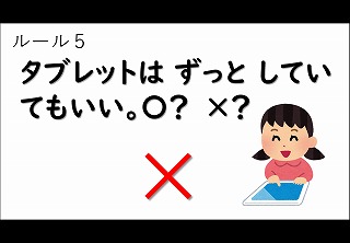 昨日、1年生がさっそくタブレットを使ってみました。基本的な使い方やルールを〇×クイズにして考えました。タブレットは学習に使うことやずっと使うのはよくないことを、1年生でも分かっていたのがとてもかっこよかったです。