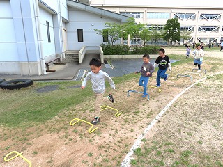運動会に向けて、今週から体力づくりを始めています。ただ、天候の影響でやっと水曜日にサーキットをすることができました。