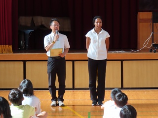 今日は、2学期からお世話になるALTのアマリーさんと出会うことができました。朝会で紹介し、3年生以上の外国語の学習を一緒にしました。好きな食べ物や趣味等をクイズにして、教えてくれました。「チア先生と同じフロリダ州から来たんだって!」「楽しかった!」等、子どもたちはすぐに打ち解けていました。これからも、楽しく外国語の学習に取り組んでいきます。