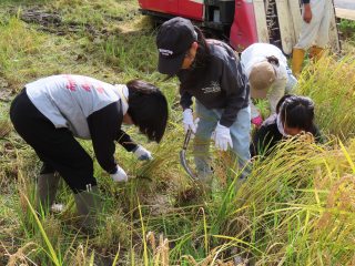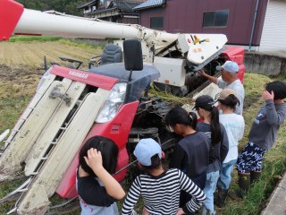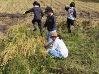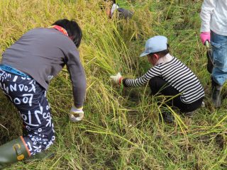 地域の方にお世話になり、稲刈りを体験させていただきました。腰をかがめて、鎌を使って刈り取ることは初めてでしたが、時間がたつほどに上手になっていきました。コンバインも見せていただきました。地域の中の”ホンモノ”の体験でしか、学べないことをたくさん学ぶことができた素敵な時間になりました。ありがとうございました。