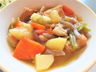 ヤンニョムチキンは揚げたチキンにコチュジャンなどを使った調味料をからめて甘辛く味付けした韓国の肉料理です。給食では、ニンニクや、すりおろし玉ねぎで下味をつけた鶏肉を揚げ、コチュジャンやケチャップで作ったソースをからめてあります。