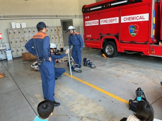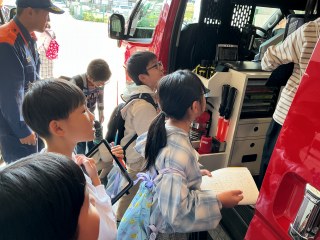 3年生3年生が消防署見学に行きました。消防服を着せていただいたり、質問に答えていただいたり、消防署の中を見せていただいたりしました。消防署で働く方が、自分たちのくらしを守るために、どんな仕事をされているかを知ることができました。今後、自分たちにできることは何か、考えていきます。