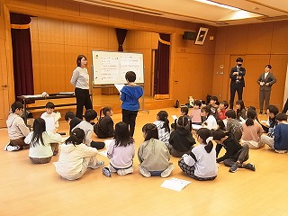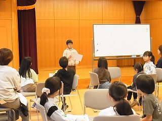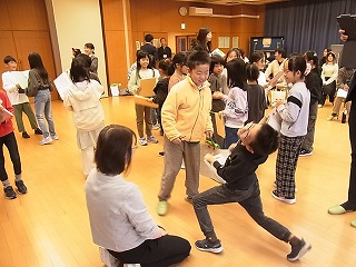 今年度初めて集まっての連携授業です。最初は外国語活動です。自己紹介やドンじゃんけんで気持ちがほぐれたところで、練習してきた英語のやりとりを「20人」の人と試しました。自分と同じ3年生と、先生と、そして参観の保護者のみなさんと楽しみながら英語でやりとりができました。