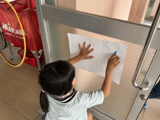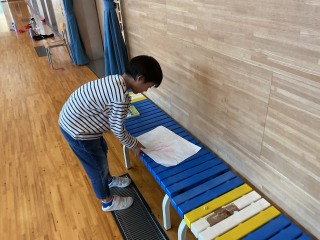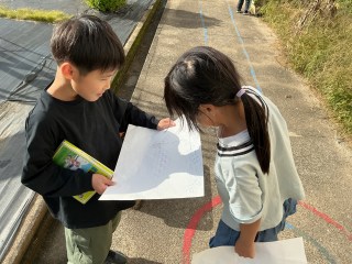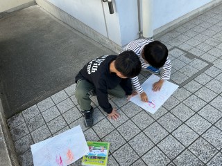 1年生1年生が図工の学習で「こすり出し」をしました。紙を置き、下の模様をうつしとります。校内のいろいろなところに行って「おもしろそうな模様」「どんな模様になるか試してみたい場所」等を自分で選び、こすり出しました。「うわあ!こんなのになった!」「見て!きれい!」1年生の素敵な声が響く楽しい活動になりました。