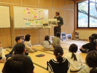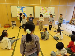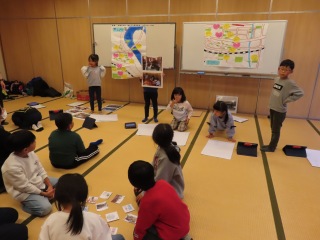 2年生2年生の3小連携の最後は吉津小学校でした。吉津小校区のお気に入りの場所ということで、公民館に案内しました。公民館以外にも素敵な場所がたくさんあるので、大きな地図を見せて、お気に入りの場所を伝えました。お手製の「校区かるた」もみんなで楽しみました。また、地域の方から「昔の須津の様子」についても伝えてもらいました。地域の魅力ある場所だけではなく、「昔の須津をよく知る地域の方」を魅力の一つとして伝えようとする素敵な2年生です。