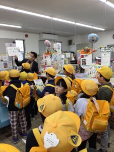 未分類2年生の生活科の学習で、11月末から12月始めにかけて3回にわたり、校区内のさまざまな施設の見学に行きました。お店のバックヤードを見せてもらったり、郵便局のお仕事についてインタビューに答えていただいたり、交番ではパトカーの内部を見せていただいたり、興味津々の2年生でした。