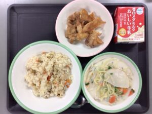 2月12日の献立(リクエストリレー献立) 05.給食献立 Twitter Facebook はてブ Pocket LINE コピー 2026.02.12 チャーハン 牛乳 鶏肉のから揚げ 五目ラーメン 今日は、1・4・5年生が考えたリクエストリレー献立です。 Post Views: 46