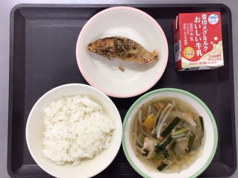 ごはん 牛乳 あじのねぎソース 五目汁
