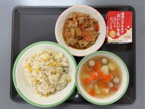 4月10日の献立 05.給食献立 Twitter Facebook はてブ Pocket LINE コピー 2026.04.14 2026.04.10 コーンライス 牛乳 豚肉のケチャップ炒め じゃがいものスープ Post Views: 12