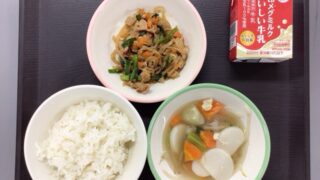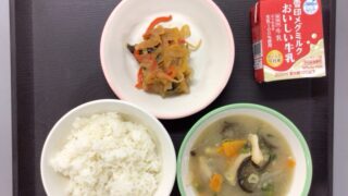 ごはん 牛乳 しらたきのチャプチェ トック入りスープ